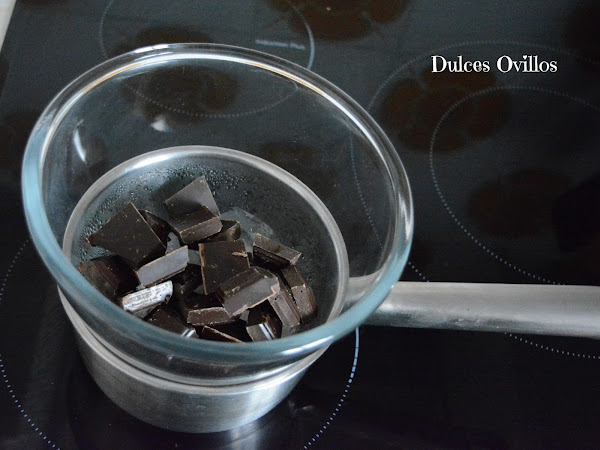 2 - Fundimos la mitad del chocolate negro al baño María.