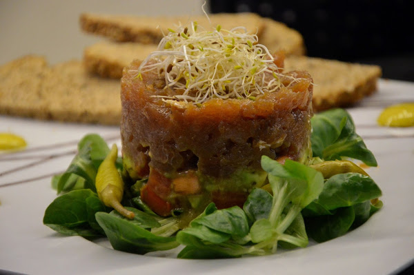 Después apareció el tartar de salmón con aguacate: bueno. La proporción entre salmón y aguacate era correcta y el aliño estaba rico (toda una alegría con lo difícil que es encontrar un tartar decente últimamente en la capital).
