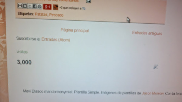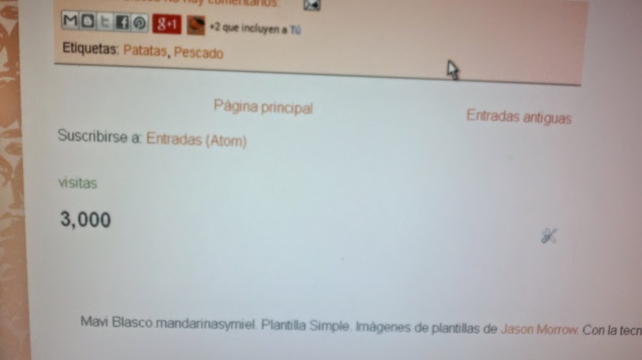 Para los que tienen blogs 3000 visitas será muy poco. pero a mí me hace mucha ilusión que me sigáis y veáis las recetas que pongo, bueno ahora ya habrán mas de 3000 jajaja.