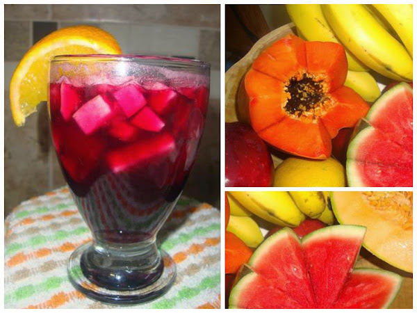 Esta bebida es una delicia, hay personas a las que no les gusta el betabel, pues con esta receta, tal vez cambien de opinión, como sabrán el Clericot es una bebida que lleva algún cítrico con un toque de alcohol y va acompañada con trozos pequeños de frutas variadas, pues esta agua de betabel, lleva la misma idea, cómo recuerdo mi infancia con esta deliciosa bebida, pues nos encantaba que nos la prepararan y comernos al final con una cuchara todas las frutas, creo que era uno de esos días en los que tomábamos más agua de lo normal, y creo que era por ese delicioso sabor que tiene, hoy que se la preparé a mi familia, fue un gusto verlos servirse varias veces, y a las pequeñas comerse la fruta con la cuchara tal y como yo lo hacía cuando estaba chiquita, y lo que más me gustó es que se terminó en un dos por tres, y eso que sólo para la hora de la comida preparamos siempre 1 jarra de 4 litros de agua fresca, y a veces tenemos que preparar más, pero esta vez, las pequeñas se terminaron la jarra enorme solitas, solitas... creo que no me dejaron disfrutar más que el vaso de agua que ven en la fotografía, pero para mi fue un gusto, pues es sumamente nutritiva esta bebida, y además me encanta ver cómo disfrutan lo que les preparo...