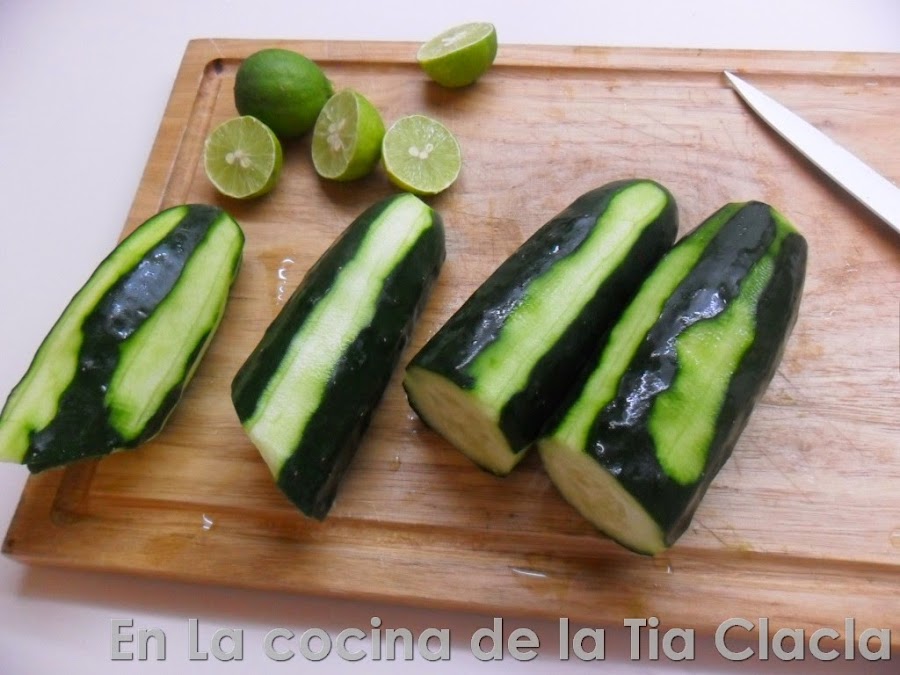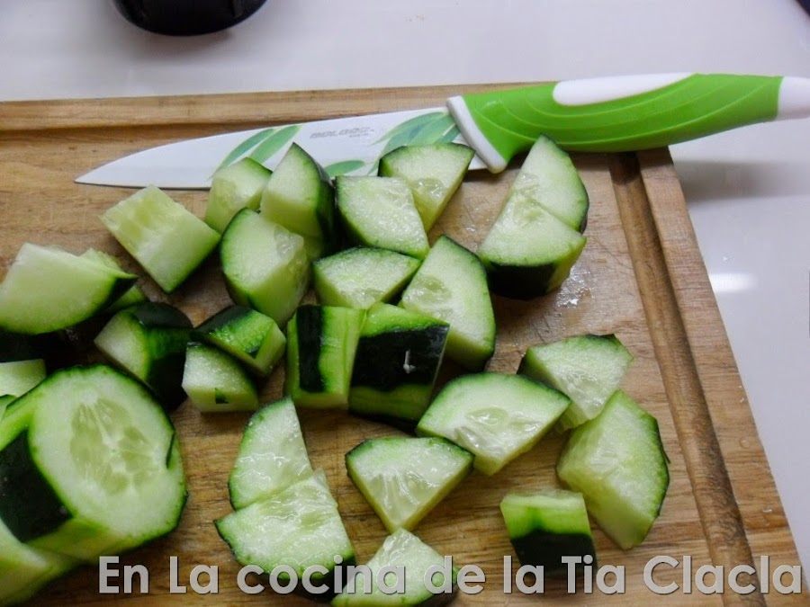 · Parta el pepino en cuadros.