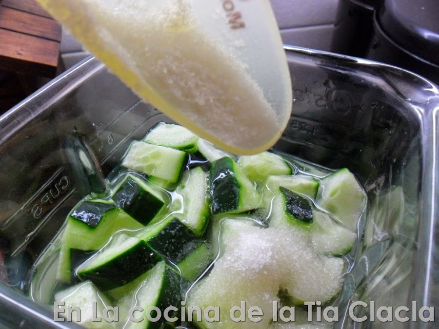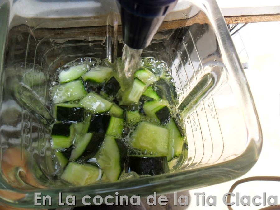 · Ponga el pepino en la licuadora.
