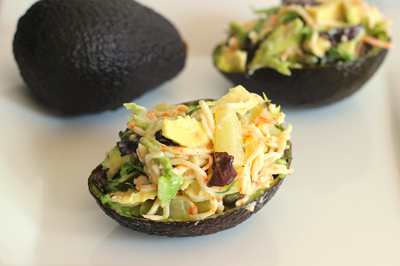 Preparación Aguacate Rellenos con Surimi y Piña