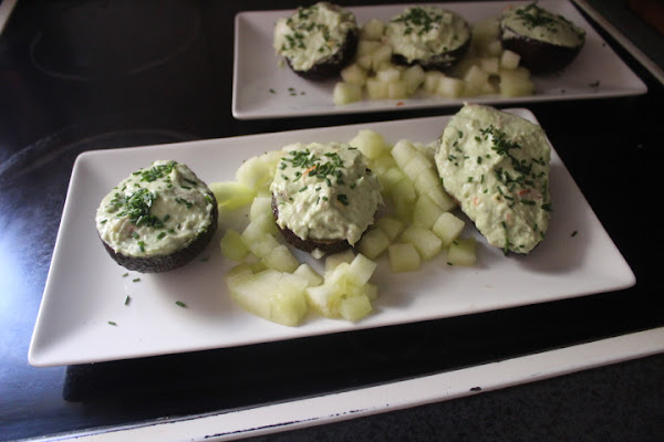 Como tenía 3 aguacates bastante maduros en el frigorífico y los restos de un melón de Galia, se me ocurrió preparar estos aguacates rellenos, ricos, fáciles y rápidos de realizar.