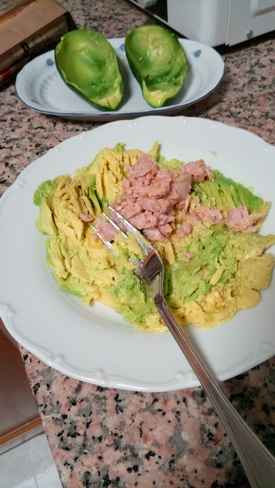 Los ingredientes para dos personas son: dos aguacates maduros pero que estén firmes, 1 lata de atún mediana, 1 huevo duro, el zumo de un limón, 4 cucharadas de mayonesa, 2 cucharaditas de mostaza, sal y pimienta.