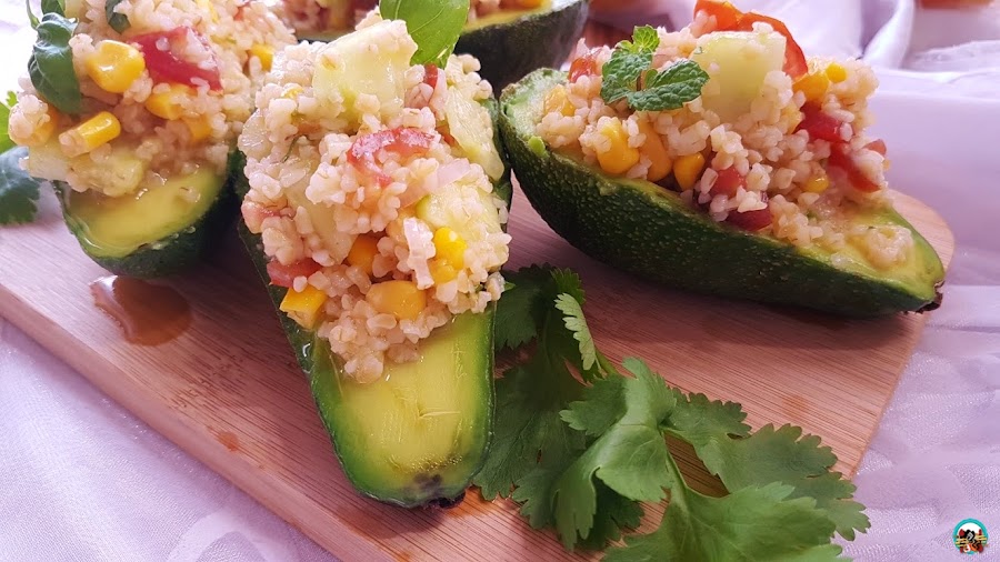 Hoy vamos a disfrutar de un plato con pocos ingredientes que no garantiza el éxito. Unos sabrosos aguacates rellenos con bulgur y algunas cosas saludables.