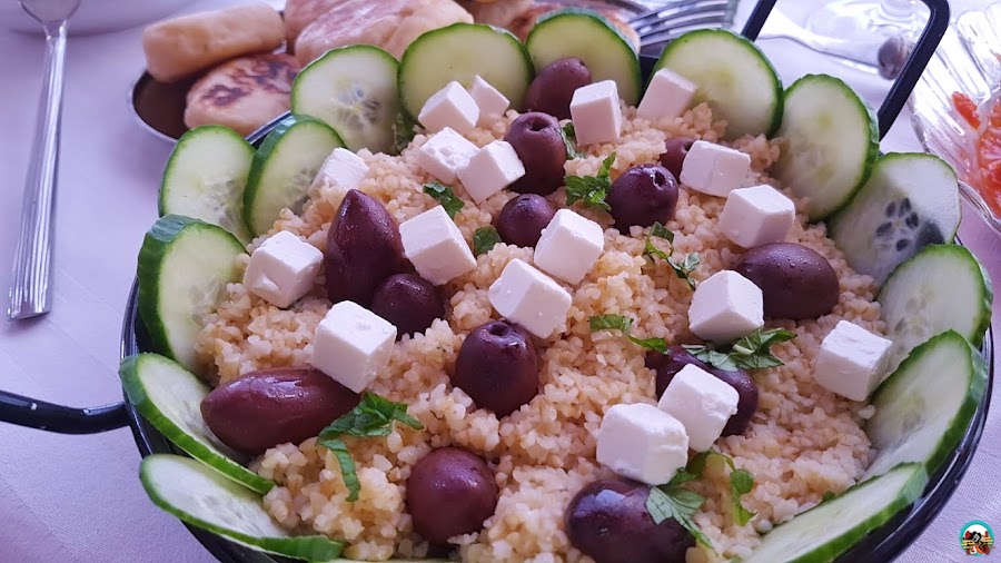 1.- Ponemos un cazo de agua a hervir con sal y una hoja de laurel. Cocemos el bulgur 17 o 20 minutos. Lo escurrimos bien y pasamos por agua fría bajo el grifo.