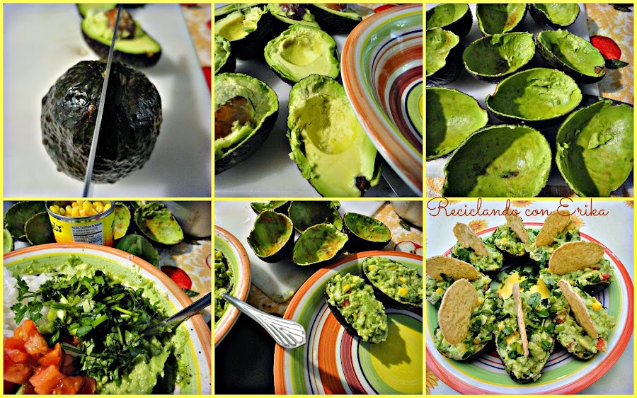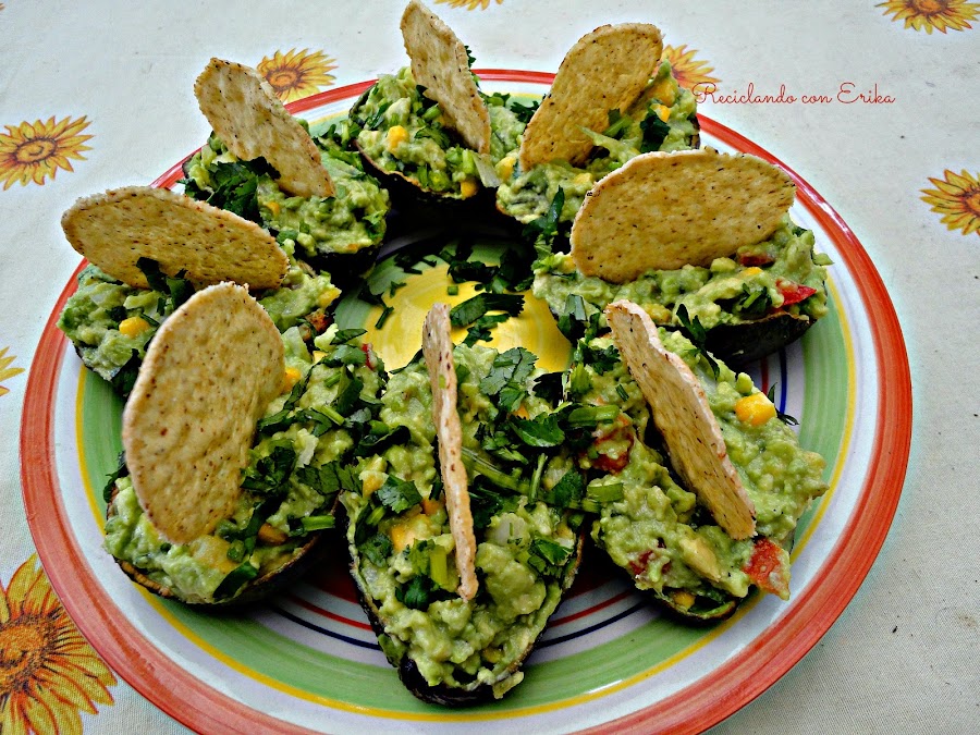 Procedes a rellenar las cáscaras de aguacate , decorando con cilantro picadito , nachos o lo