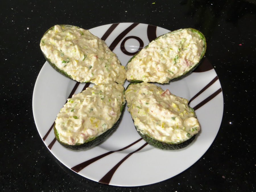 Escurrimos la lata de atún, picamos finamente la lechuga, la cebolla y el tomate y juntamos con el aguacate. Le echamos un poco de sal y añadimos la mayonesa y el queso crema. Removemos y vamos rellenando las cáscaras de los aguacates. Y ya está listo para servir, un plato sencillo y fresquito para este verano.