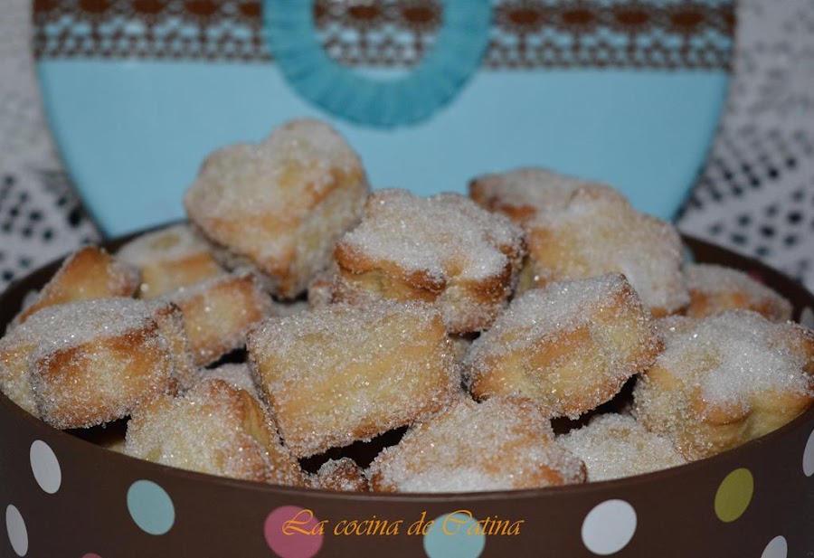 Ponemos azúcar en un plato y recién sacados del horno los vamos rebozando en ella y ya los tenemos listo para consumir.