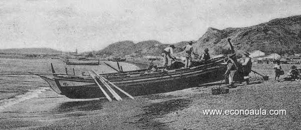 Quiero imaginar, hacerme una idea de lo que fue, de lo que sucedía al atardecer, cuando las barcas volvían al rebalaje, trabajando con las artes de pesca; vuela mi imaginación y veo las jábegas poniendo proa a la orilla e incluso a los jabegotes bogando y luchando con las olas hasta encallar la barca en la playa para sacar en sus redes los tesoros que guardan celosamente las aguas de la Bahia.