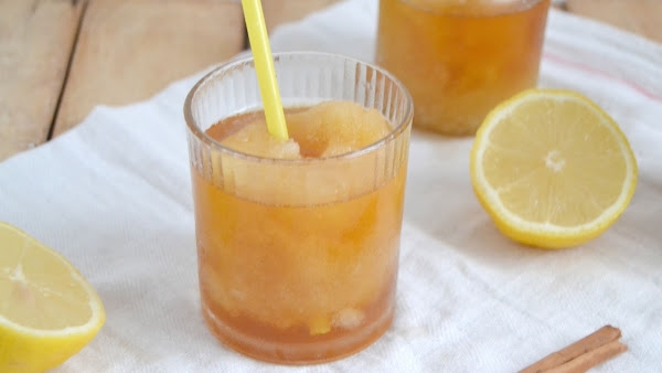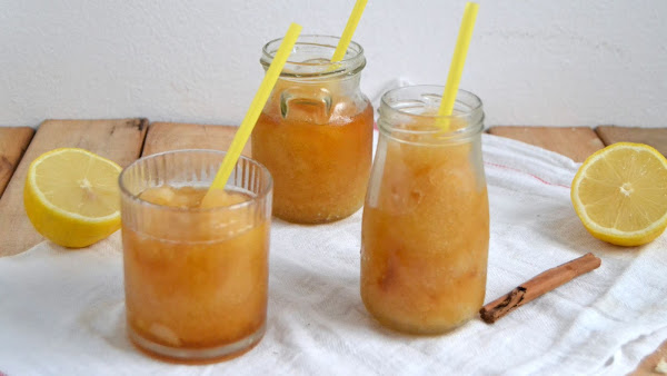 4.- En un táper o botella grande mezclamos el almíbar frío con el resto del agua (1 litro) y el zumo de los limones y ponemos a congelar. Cada media hora lo sacamos y removemos para evitar que se formen cristales de hielo muy grandes. Repetiremos este proceso 3 o 4 veces más hasta que tenga ya textura de granizado. ¡Que lo disfrutéis!