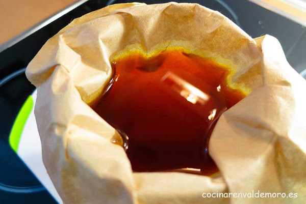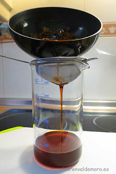 Ahora hay que filtrarlo. Hacemos una primera filtración con un colador fino, que si lo hacemos con cuidado, puede ser suficiente.