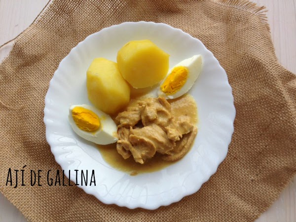 Escogí una receta muy sencilla, para que mi familia no protestase mucho, y me moderé con el picante, porque, sí, señores, el ají amarillo pica un montón... La receta original os la dejo aquí. El ají de gallina es uno de los platos más típicos de Perú, y por tanto, me parecía que era conocer esta cocina desde su corazón.