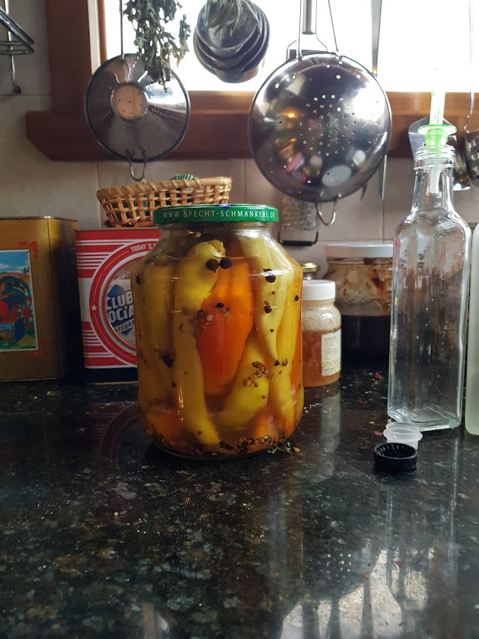Colocá los ajíes bien lavados y secados en el frasco. Tan apretados como puedas. Me gustan acomodados verticalmente y combinando las posiciones arriba/abajo. Te lo muestreo en una foto.