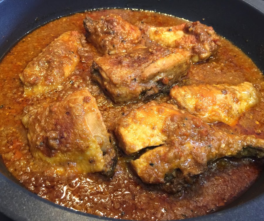 Paso a paso:1. Cubrimos la base de la cazuela con aceite de oliva virgen extra. Salpimentamos los trozos de pollo. Calentamos a fuego alto y sellamos bien el pollo. En casa nos gusta utilizar el pollo ecológico, su carne es más jugosa y más rojiza. Cuando esté marcado lo reservamos en un plato a parte para más adelante.