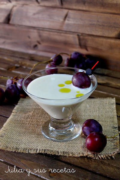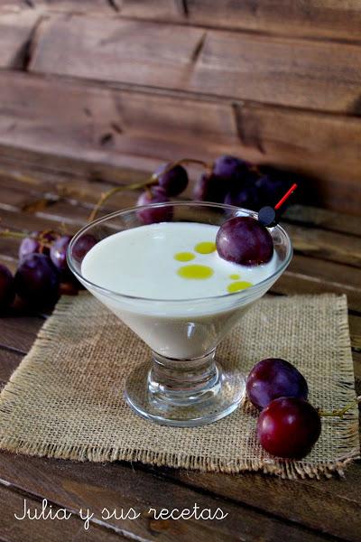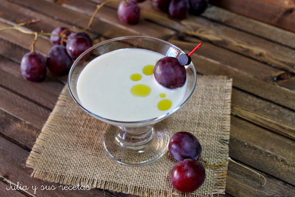 El ajoblanco es una sopa fría que generalmente se prepara con pan del día anterior, almendras, ajo, agua, sal, aceite y un poquito de vinagre. Pero puede variar en cada región.