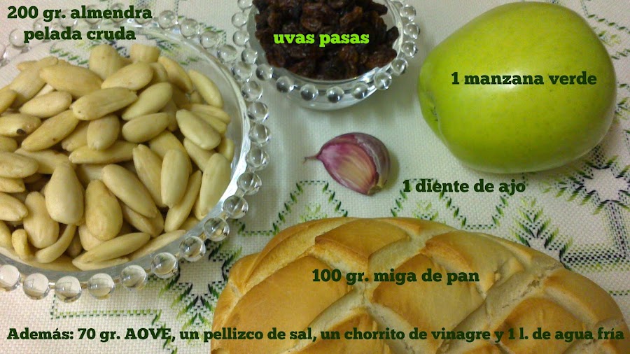 Como cuando lo hice esta vez era para tomarlo en casa de mi madre, no le añadí todo el agua, sino algo así como medio litro. Por una parte es más cómodo de trasladar, pero sobre todo, resulta que ese día estábamos a 40ºC, así que quedé con ella en que el resto del agua lo tendría ella preparado en el congelador, porque este plato, como no esté bien frío pierde casi toda la gracia....