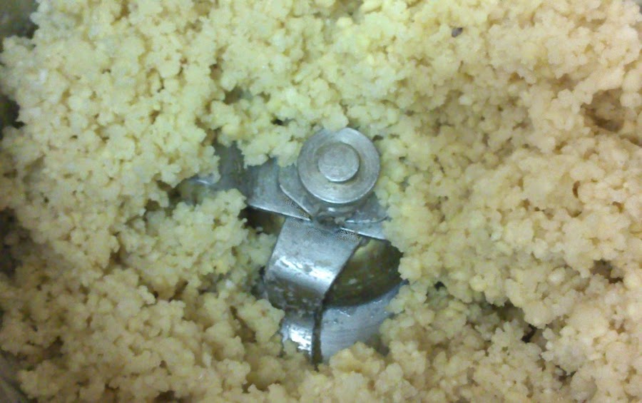 En caso de batidora tradicional, este paso sería igual: añadir el pan húmedo y batir hasta obtener una pasta gruesa