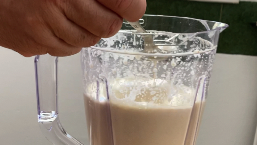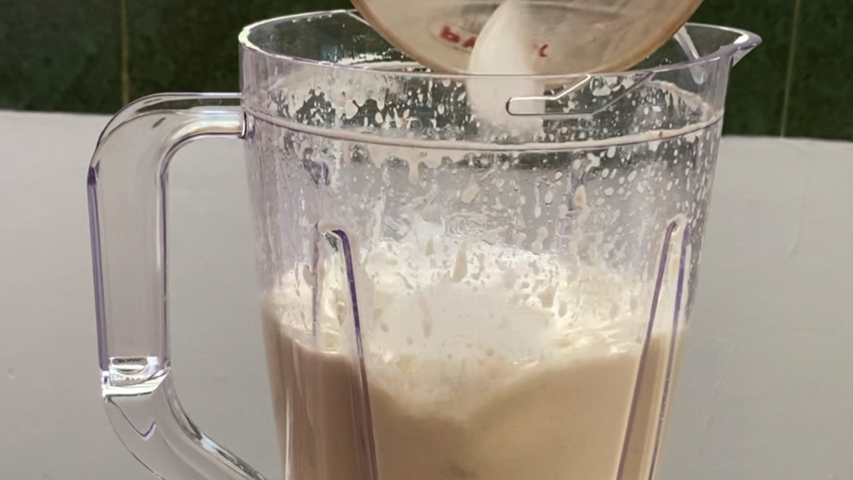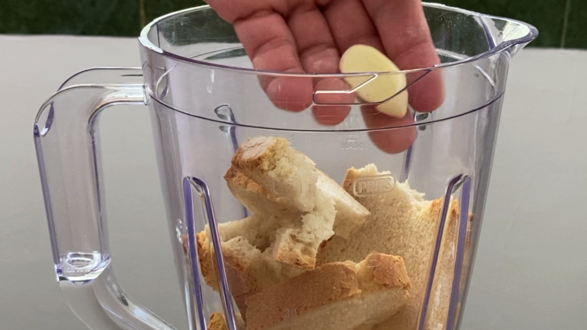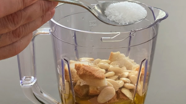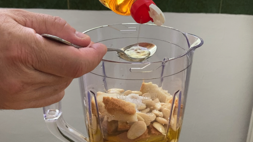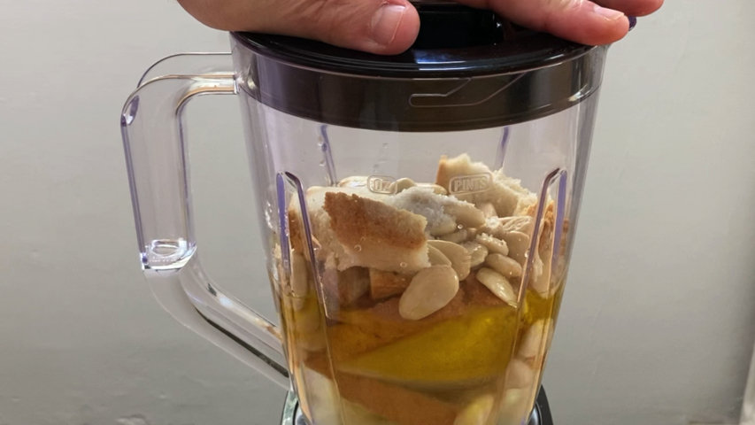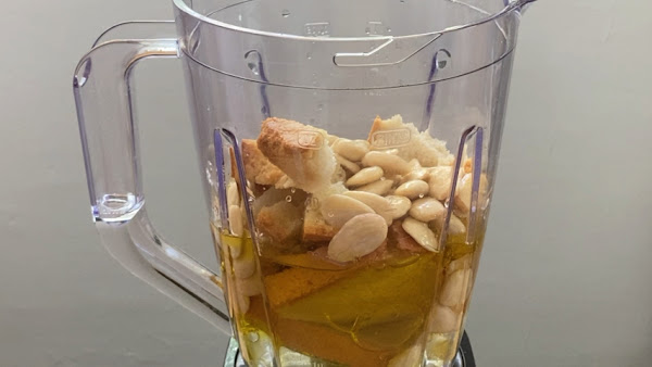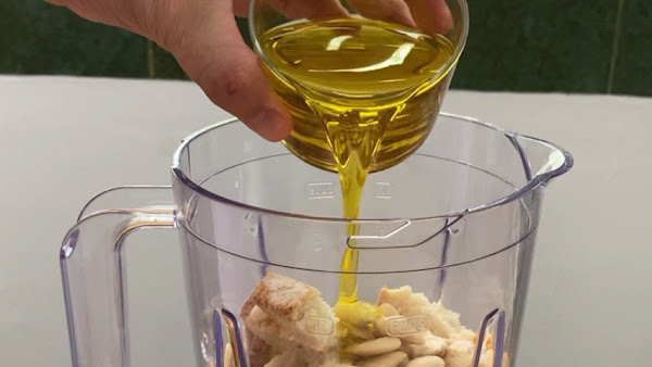 Introduce todos los ingredientes en un vaso de trituradora menos 1/4 del aceite.