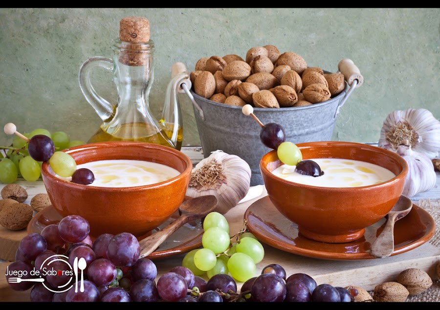 Estábamos tensos sentados alrededor de la mesa. Nos mirábamos a los ojos como si a través de ellos pudiésemos adivinar qué cartas tenían los rivales. Estudiábamos sus tics, sus gestos, sus manías. Yo tenía un buen juego, una buena mano. Tres ases: un gazpacho, una vichysoise y un salmorejo cordobés . Las mejores cartas para afrontar un verano caluroso, pero quería más, quería hacer el póquer de las cremas frías y pedí otra carta que voló sobre el tapete verde hasta caer delante de mí. La levanté lentamente con manos temblorosas y ojos como platos. A mis rivales les caía el sudor por la frente como si se hubiesen pasado toda la mañana frente a los fogones.¡Bingo!, exclamé. Ahí estaba el cuarto as: el ajoblanco. Póquer. Era mi día de suerte y el vuestro si hacéis esta refrescante sopa.