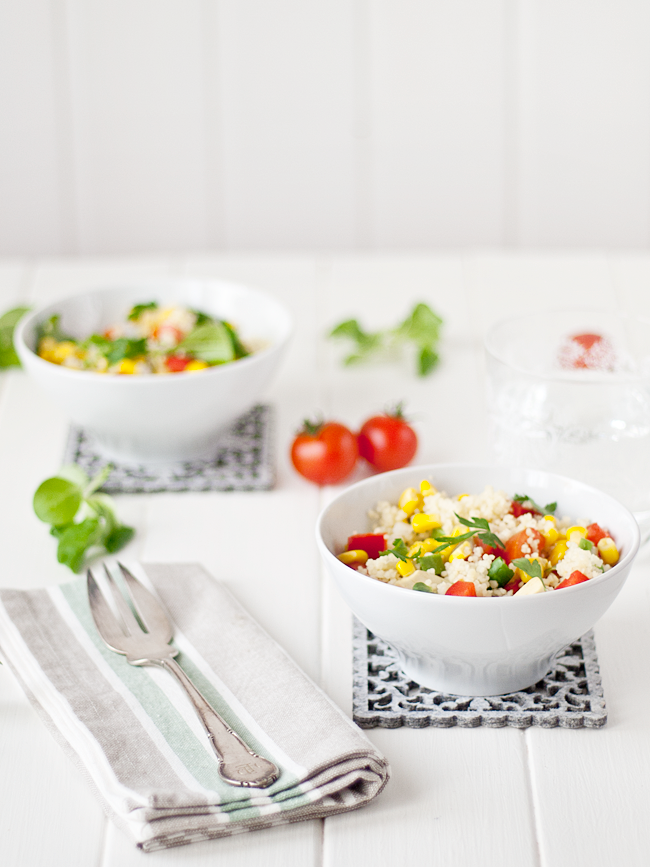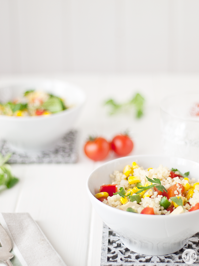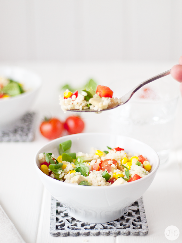 Pero esa receta prometo compartirla otro día. Tal vez con menos calor, porque si os traigo un plato con picante ahora, en verano,tal vez me odiéis. Por eso hoy he decidido compartir con vosotros esta deliciosa ensalada de cuscús. Me parece una opción fresca y diferente que podemos introducir en nuestras comidas. Como bien sabéis debemos comer muchos cereales a lo largo de la semana y esta es una forma perfecta porque a penas lleva grasas. ¿No os parece?