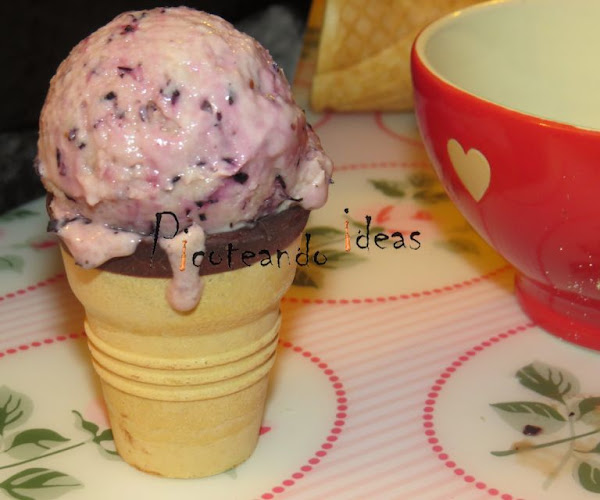 Maribel es la autora de este sensacional helado de arándanos. Sin heladera y con tres ingredientes nada mas, el resultado es realmente espectacular. En su blog Picoteandoideas, tenéis la receta completa, no olvidéis pasaros a verla.