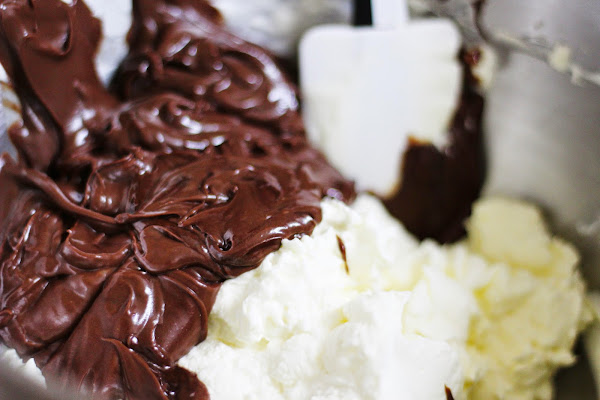 Añadimos la nata (crema de leche) al chocolate e integramos con movimientos envolventes para no bajar la nata (crema de leche) demasiado.