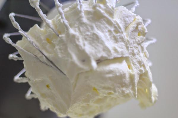 Cogemos el resto de la nata (crema de leche) y la montamos con el azúcar hasta que este apunto de nieve, bien montadita pero sin pasarnos que se nos vuelve mantequilla.