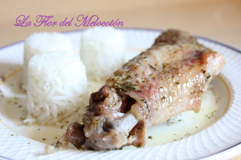 El acompañamiento ideal es arroz blanco, que mojaremos con la misma salsa que las alas. Pero con puré de patata también está muy bueno.