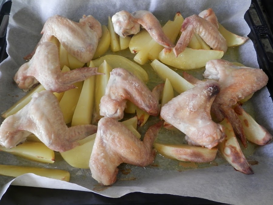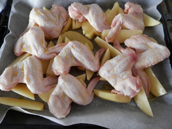 Encima pon las alas y mete en el horno a 180º durante 45 minutos.