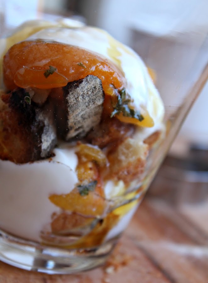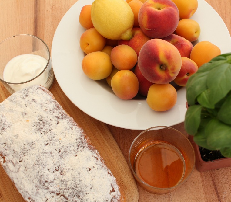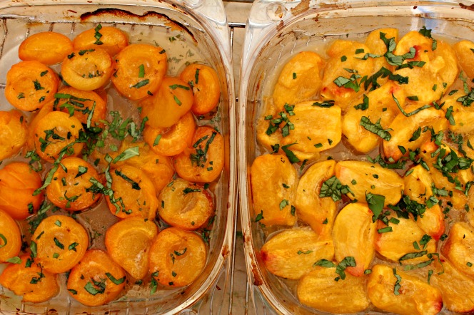 Picamos unas hojas de albahaca, y las espolvoreamos por encima de la fruta, nada más sacarlas del horno.
