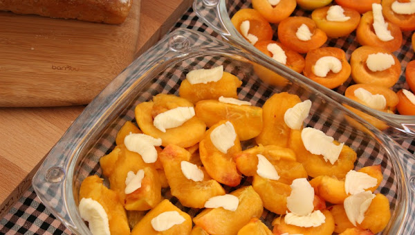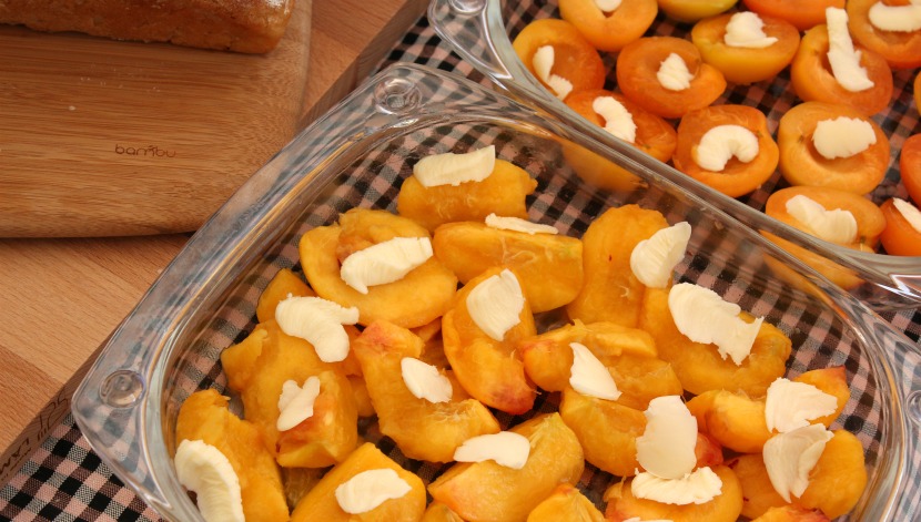 Un poco de mantequilla, sobre cada trozo de fruta.