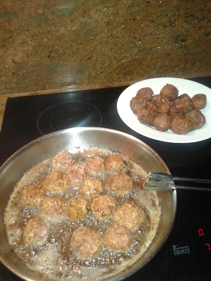 Y vamos dorando las albóndigas y reservando en un plato aparte.