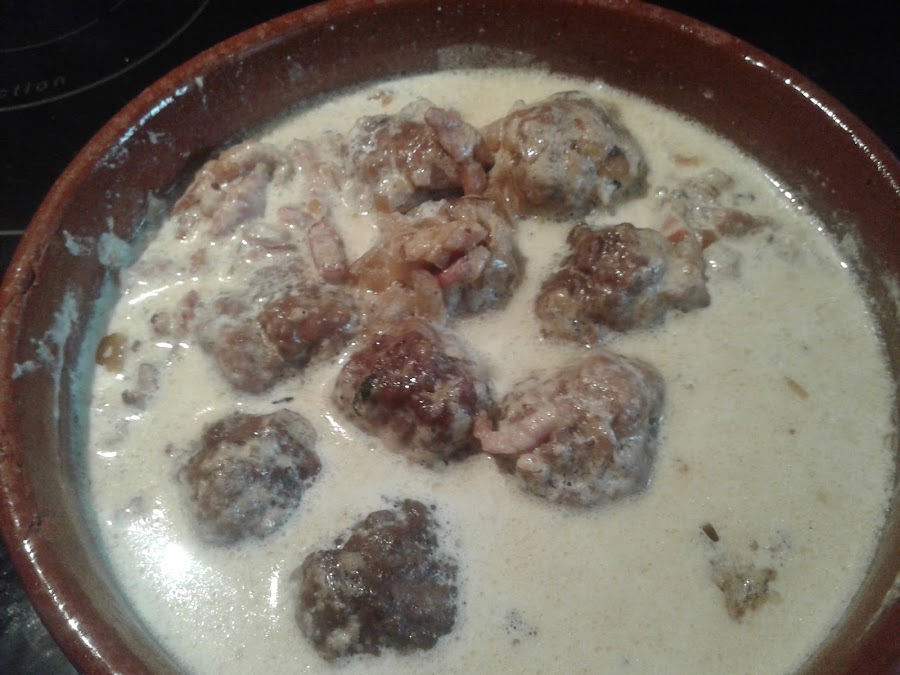 Hola holaaaa!!! el otro día hablando con mi cuñada Carmen comenté que necesitaba nuevas sugerencias de recetas porque se me acaban las ideas y me dijo...porqué no haces albóndigas a la carbonara? y aquí las tenéis. Creo que tenía que haberlas hecho más pequeñas y hervir unos espaguetis y hubiese sido un plato único de lujazo. Espero que os gusten.