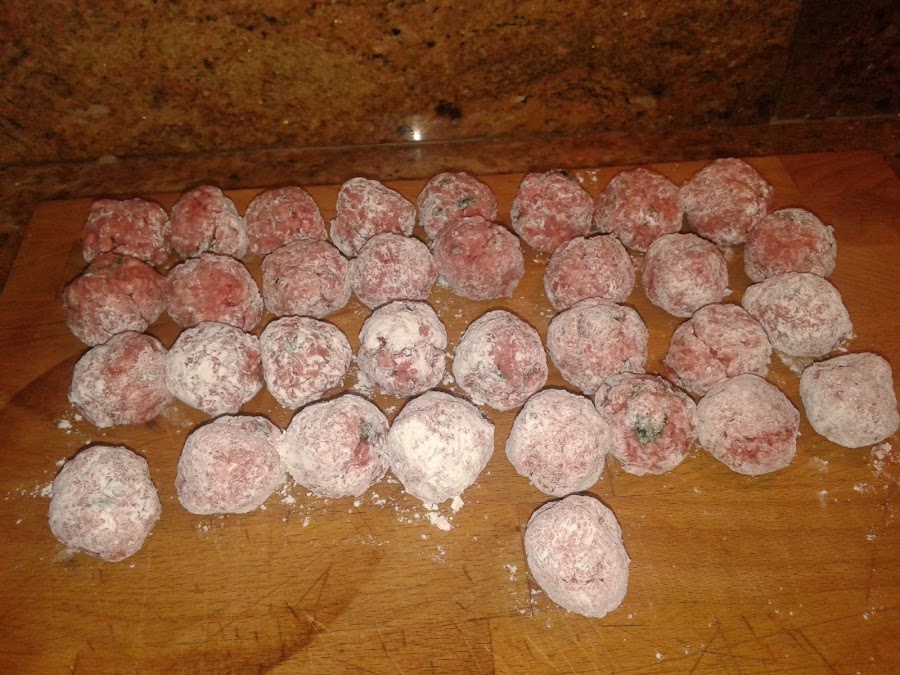 Mezclamos bien con las manos y empezamos a hacer las albóndigas.