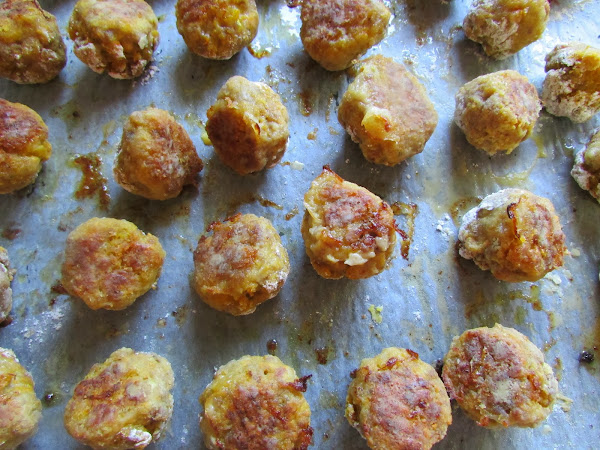 Mientras se hace la salsa formamos las albóndigas, las rebozamos en harina y las vamos poniendo en la bandeja del horno untada con aceite.