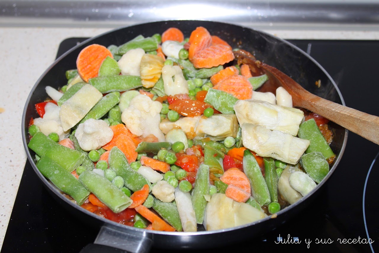 Y tanto niños como mayores les encantará, y si éstas verduras no te gustan podrás cambiarlas por las de tu elección, es lo bueno de este plato , que se puede adaptar a todos los gustos!!