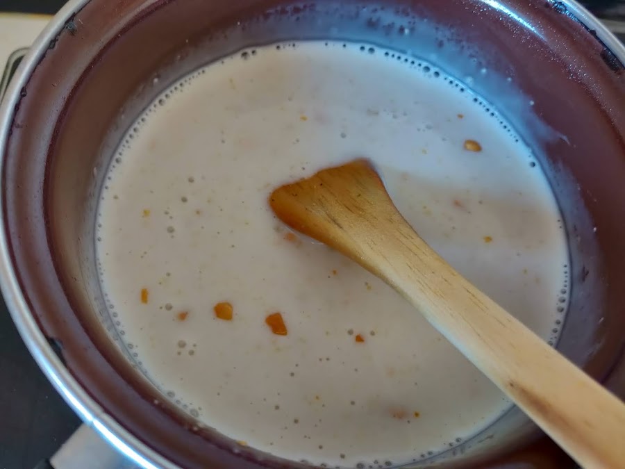 Agregamos la leche de coco y dejamos a fuego bajo unos 5 minutos.