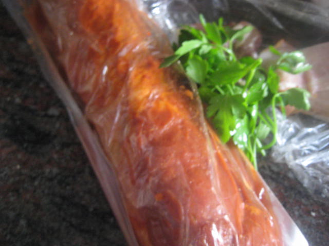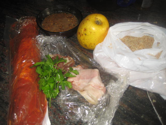 Para la masa de las albóndigas1 solomillo de cerdo adobado, (500 gr. más o menos) no hay que poner sal