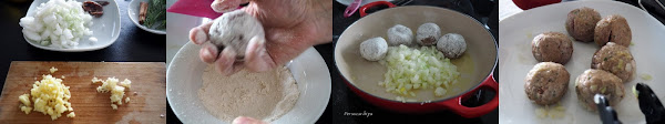 Poner harina en un bol y enharinar las albóndigas. Colocarlas en la sartén para que se vayan tostando. Retirar y reservar.