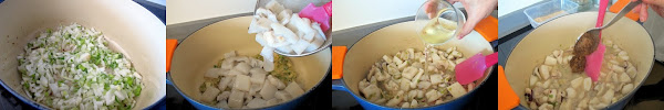 Cuando la cebolla esté dorada, añadir la sepia. Rehogar un par de minutos y añadir el vino blanco y dejar que se evapore el alcohol.