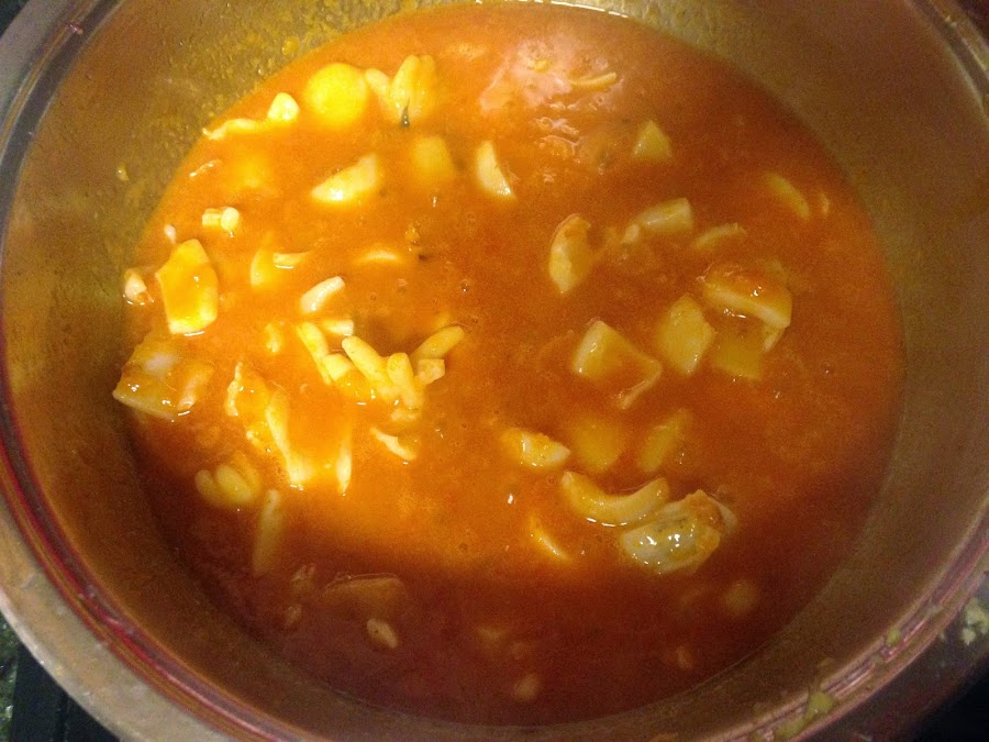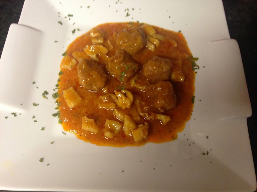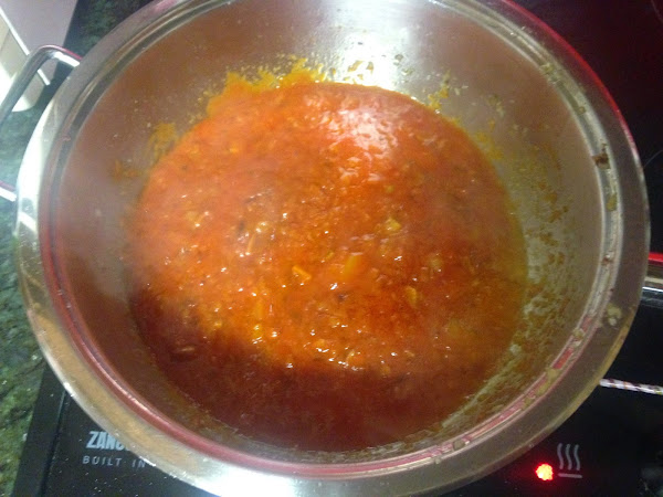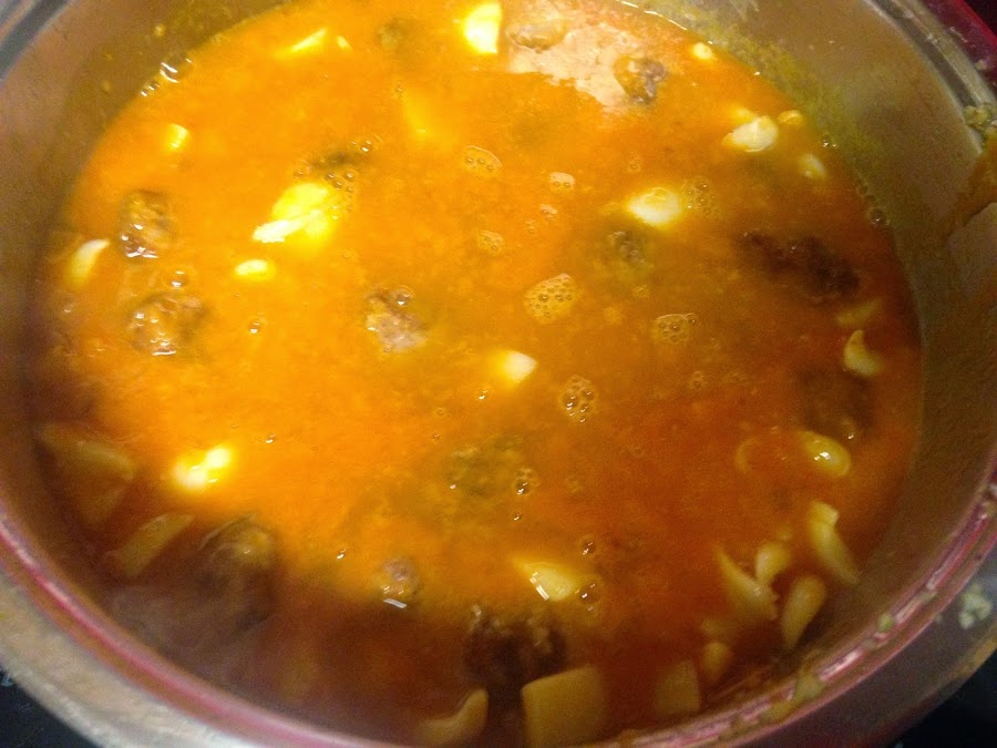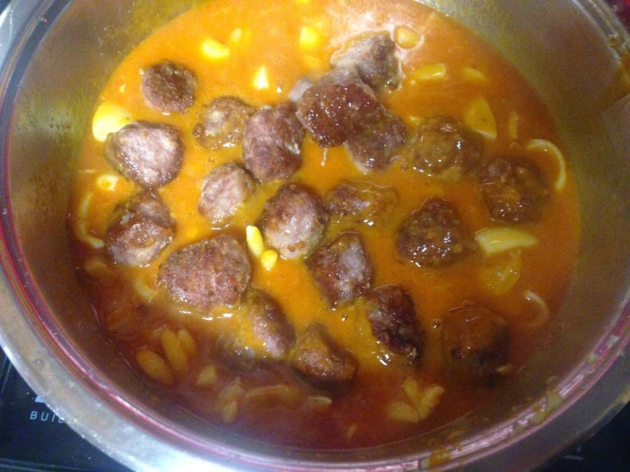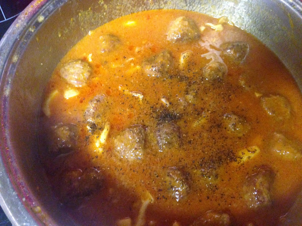 Añadimos las albondigas y cubrimos de caldo , dejamos cocer durante 30 minutos aprox.