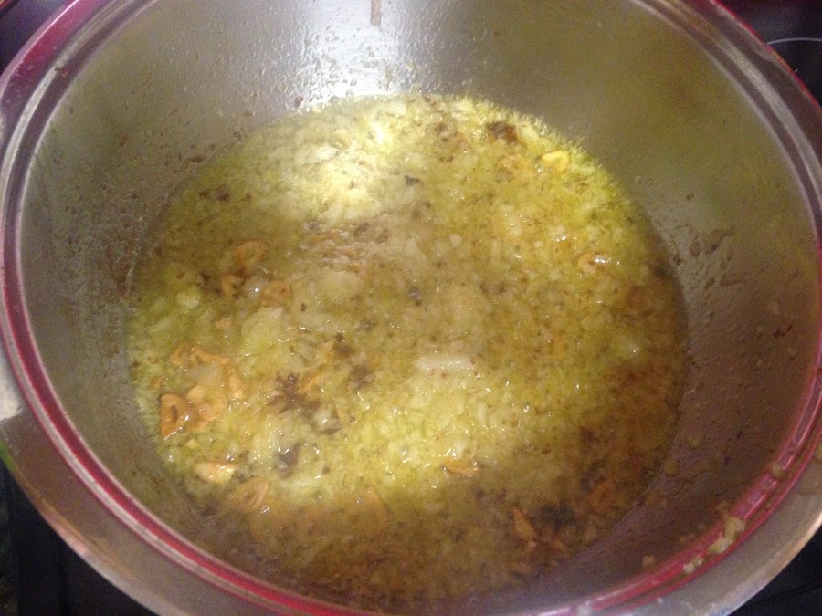 Añadimos la cebolla picada, cuando esté dorada añadimos el tomate.