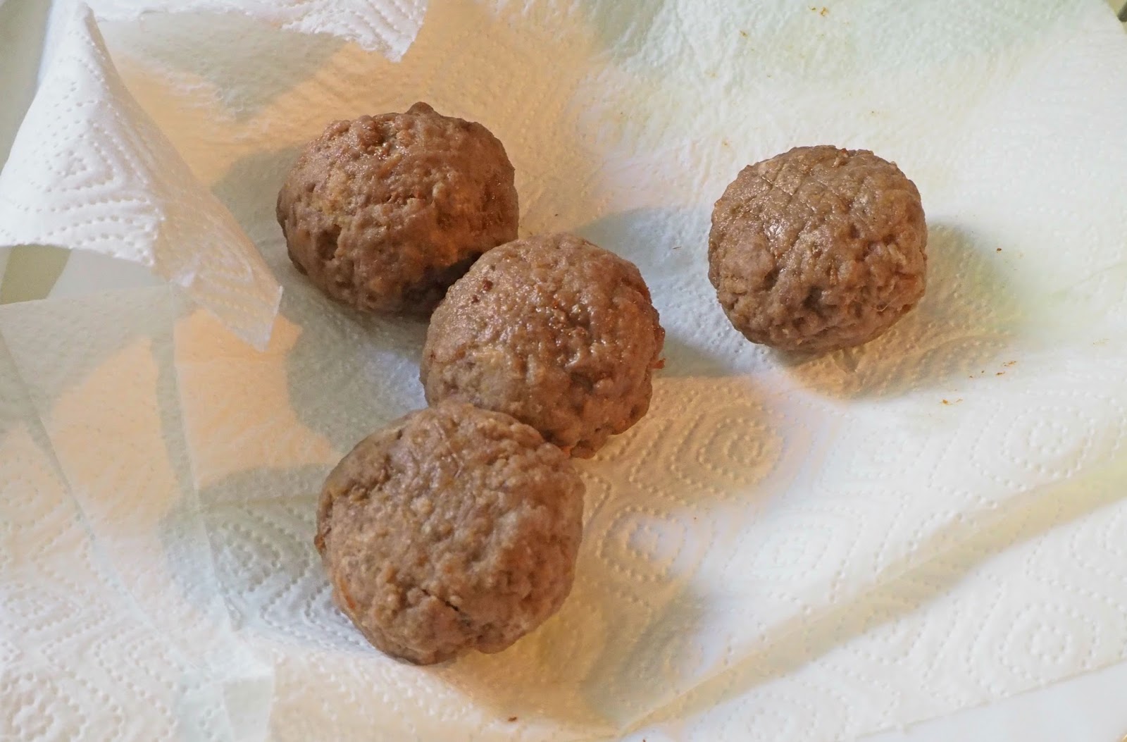 - Una vez listas las albóndigas las ponemos en un papel de cocina para quitar el exceso de aceite y las ponemos en una cazuela con la salsa de tomate. Ponemos a fuego máximo y cuando empiecen a hervir bajamos para que cuezan a fuego medio-bajo unos 8-10 minutos.