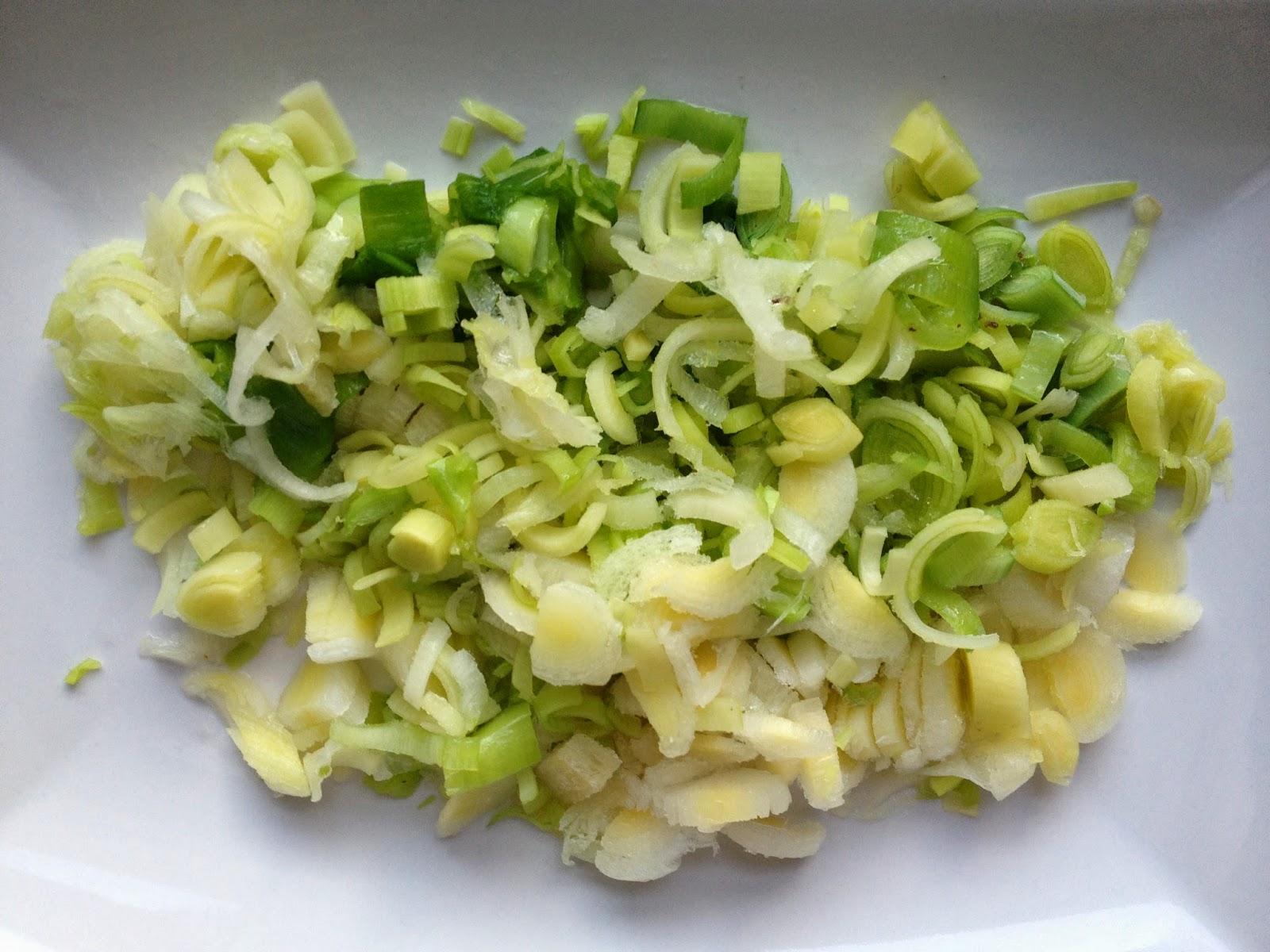 1 Ponemos a calentar la cazuela donde vamos a cocer el arroz, añadimos aceite de oliva una cucharada y mientras se calienta , empezamos a cortar 100 Gr de puerro , lo mas pequeño que podamos.