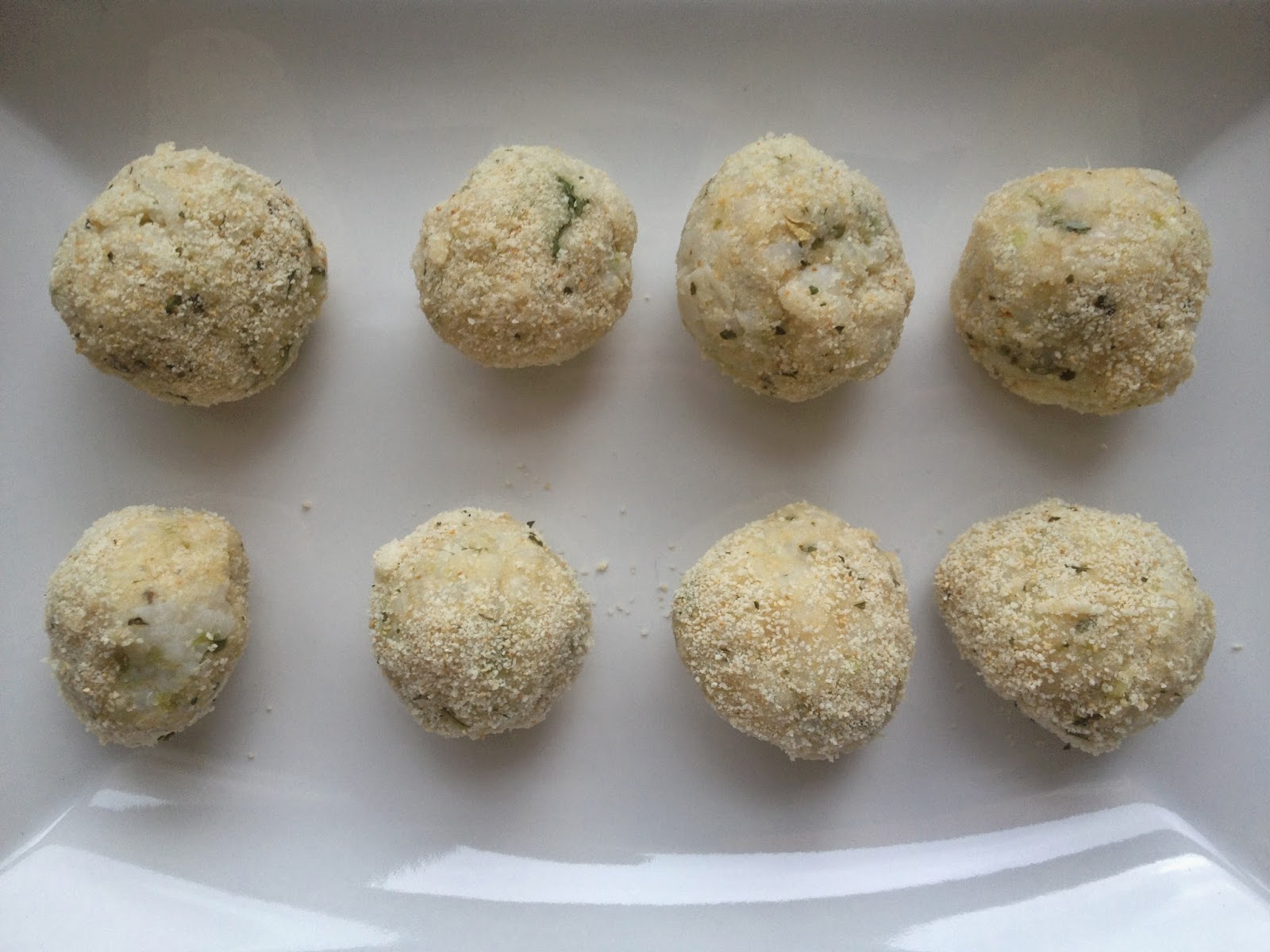 5 Ya tendremos cocido el arroz, le escurrimos el agua y dejamos que se enfríe. Una vez frío, en un plato preparamos pan rayado y cogiendo un poco de pan rayado en las manos y otro poco de arroz, formamos unas bolas. Apretamos la bola para que se compacte bien .
