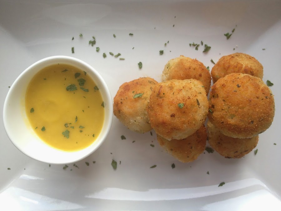 Ya tenemos preparada la crema de calabaza y las bolitas de arroz ... ahora toca disfrutarlas .