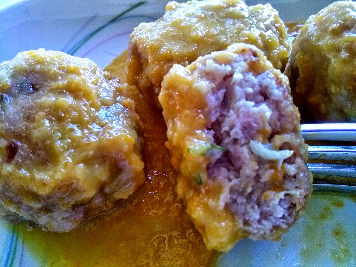 Vierte la salsa en una cacerola ( si ves que está muy espesa añade un poco de agua) y pon el ella las albóndigas. Deja que cuezan en la salsa unos 10 minutos.