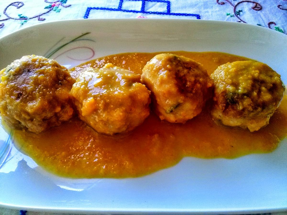 Forma las albóndigas, reboza en harina y fríelas en aceite de oliva . No hace falta freírlas mucho ya que terminarán de hacerse en la salsa.